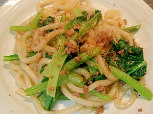 たっぷり小松菜と挽肉の焼うどん 醤油味 レシピ 作り方 By Pchan2 楽天レシピ
